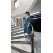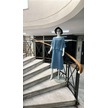 İtalyan Saçak Detaylı Müslin Keteni Yırtmaçlı Elbise - Bluz & 2'li Takım-9905 Koyu İndigo