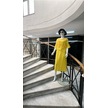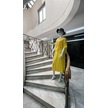 İtalyan Saçak Detaylı Müslin Keteni Yırtmaçlı Elbise - Bluz & 2'li Takım-9905 Sarı