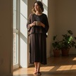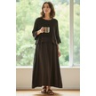 İtalyan Saçak Detaylı Müslin Keteni Yırtmaçlı Elbise - Bluz & 2'li Takım Koyu Kahve