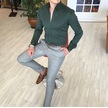 Italyan Stil Slim Fit Dik Yaka Saten Erkek Gömlek Yeşil T4743