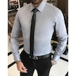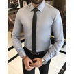 İtalyan Stil Slim Fit Saten Pamuk Erkek Kravat Yaka Gömlek Gri T9428-gri Gri