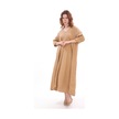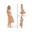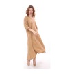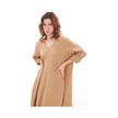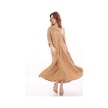 İtalyan V Yaka Uzun Kol Keten Elbise-8907 Camel