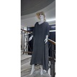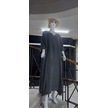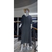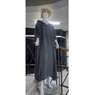 İtalyan V Yaka Uzun Kol Keten Elbise-8907 Gri