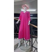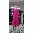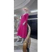 İtalyan V Yaka Uzun Kol Keten Elbise-8907 Pembe