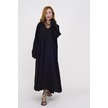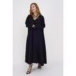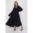 İtalyan V Yaka Uzun Kol Keten Elbise-8907 Siyah