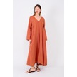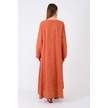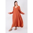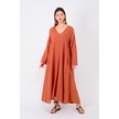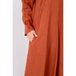 İtalyan V Yaka Uzun Kol Keten Elbise-8907 Tarçın