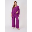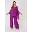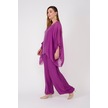 İtalyan Yarasa Kol İpek Bluz & Pantolon Takım-8767 Leylak Çok Renkli