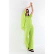 İtalyan Yarasa Kollu İpek Bluz Fıstık Yeşili
