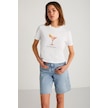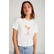 Ivonne Kadın Cocktail Baskı Desenli Kısa Kollu Organik Pamuklu Bisiklet Yaka Crop Beyaz T-shirt