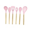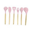 Ivory Doğal Bambu Saplı %100 Silikon Mutfak Seti 6 Parça Pembe Pembe