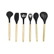 Ivory Doğal Bambu Saplı %100 Silikon Mutfak Seti 6 Parça Siyah