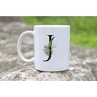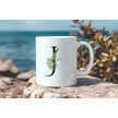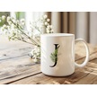 J Harf Zarif Yaprak Desenli Kupa Bardak - Naturel Sade Alfabe Harfli Bardak - Kişiye Özel Hediye Beyaz