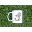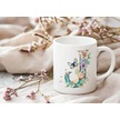 J Harfi Çiçekli Kupa Bardak - Soft Renk Çiçek Ve Kelebek Desenli Zarif Kahve Kupası - Bohem Beyaz