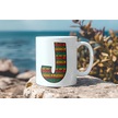J Harfi Etnik Desenli Kupa - Afrika Tarzı Kahve Çay Kupası - Hediyelik - Black History Beyaz