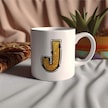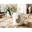 J Harfi Gold Simli Kupa Işıltılı Alfabe Harf Tasarımlı Kahve Kupası - Kişiye Özel Hediye Beyaz
