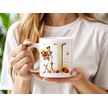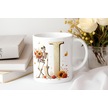 J Harfi Pembe Kareli Kalpli Göz Emojili Kupa Bardak Eğlenceli Kareli Tasarım Kahve Çay Kupası Beyaz