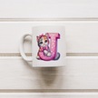 J Harfli Bardak, Sevimli Kedili Pembe Tasarım Bardak, Arkadaşa Aileye Hediye Porselen Beyaz