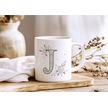 J Harfli Çiçek Desenli Kupa Bardak - Ekose Desenli Yeşil Pembe Desenli Tasarım - Kişiye Özel Hediye Beyaz