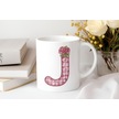 J Harfli Retro Çiçekli Kupa Bardak - Patchwork Tarz Yamalı Desenli İsme Özel Kupa - Hediye 07 Beyaz