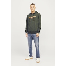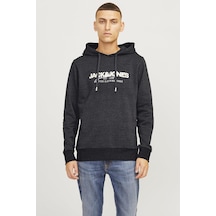Jack & Jones Erkek Kapüsonlu Gögüs Logo Baskili Sweatshirt - Alvis 12256848 White Melange Gri