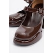Jagol Kahve Rugan Kadın Topuklu Ayakkabı Kahverengi