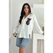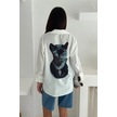 Jaguar Desen Baskılı Taşlı Gömlek Beyaz