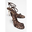 Jasmin Siyah Sarı Desenli Tek Bantlı Kadın Topuklu Ayakkabı Leopar
