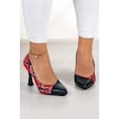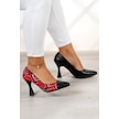 Jatqılı Plus Kırmızı Yılan Kadeh Topuklu Ayakkabı Siyah - Kırmızı