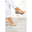 Jatqılı Plus Ten Yılan Kadeh Topuklu Ayakkabı Bej Yılan