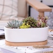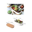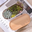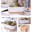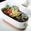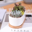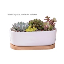 Jeehugo Beyaz Seramik Oval Sukulent Ve Kaktüs Saksısı, Bambü Tabaklı, Ev Ofis Masaüstü İçin, 2'li Set Saksı + Tabak , Bitki Yok