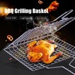 Jeemson Gümüş Demir Izgara Sepeti, Ahşap Saplı Kilitli Izgara Kafesi, Sebze-balık Et Izgarası, Barbekü Aleti, 53cm, 3-5 Kişilik Kapasite Çok Renkli
