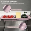 Jeemson Pembe Genişletilebilir Lavabo Süzgeç Sepeti - Bölmeli Su Akışı, Havlu Asma Çubuğu, Mutfak Hijyen Aleti Pembe