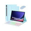 Jeemson Samsung Galaxy Uyumlu Tab S7/s8/s9/s9fe 11" İçin Mavi Kılıf + 7 Renkli Işıklı Bluetooth Klavye + Mouse Seti, Kalem Bölmeli, Çok Açı Desteği