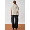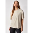 Jemmy Kadın %100 Organik Pamuk Relaxed Fit Yırtmaçlı Yuvarlak Yakalı Taş Rengi T-Shirt