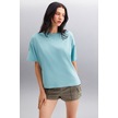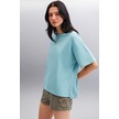 Jemmy Kadın %100 Organik Pamuk Relaxed Fit Yırtmaçlı Yuvarlak Yakalı Yeşil T-shirt