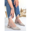 Jenti Bej Cilt Topuklu Ayakkabı Bej