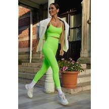 Jerf Gela Yüksek Bel, Esnek Ve Toparlayıcı Spor Tayt Neon Yeşil 001
