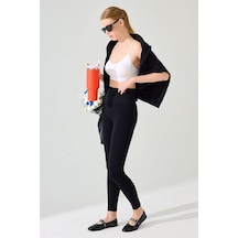 Jerf Holly Petek Desenli Yüksek Bel Tayt Siyah 001