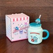Jian Fan Kupa Kapaklızarif Renk Kutusu Ve Hasır Fincan Dizgi Film Deseni Yüksek Degerli Seramik Su Bardağıyeyeş Yeşil