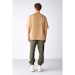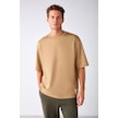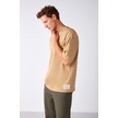Joel Erkek %100 Organik Pamuklu Kalın Kumaşlı Özel Dokulu Etiket Detaylı Oversize Bej T-shirt