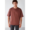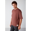 Joel Erkek %100 Organik Pamuklu Kalın Kumaşlı Özel Dokulu Etiket Detaylı Oversize Bordo T-shirt