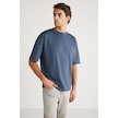 Joel Erkek %100 Organik Pamuklu Kalın Kumaşlı Özel Dokulu Etiket Detaylı Oversize Indigo T-shirt