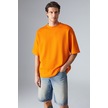 JOEL Erkek %100 Organik Pamuklu Kalın Kumaşlı Özel Dokulu Etiket Detaylı Oversize Turuncu T-Shirt