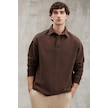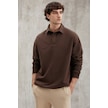 John Erkek Polo Sweat Gömlek Yakalı Arkası Uzun Yırtmaçlı Diagonel Kumaşlı Koyu Kahverengi Sweatshir