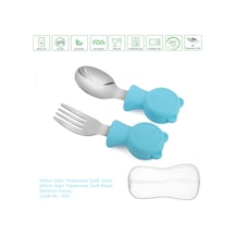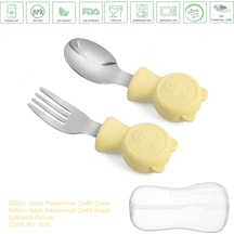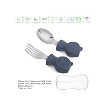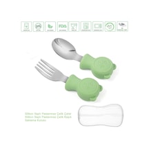 Jojobebek Kaşık Çatal Seti, Ergonomik Kısa Saplı Silikon, Paslanmaz Çelik Uçlu, Saklama Kutulu, 9-24 Ay / Gri