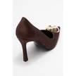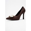 Jordana Kahverengi Süet Gold Tokalı Kadın İnce Topuklu Ayakkabı Kahverengi