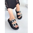 Juana Siyah Nubuk Taşlı Terlik Çok Renkli