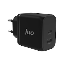 Juo 45W GaN USB-C + USB-A Şarj Aleti iPhone & iPad & Macbook & Samsung Uyumlu PD Type-C Hızlı Şarj Cihazı Siyah