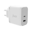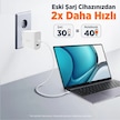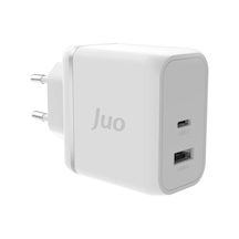 Juo 65W GaN USB-C + USB-A Şarj Aleti iPhone & iPad & Macbook & Notebook Uyumlu PD Type-C Hızlı Şarj Cihazı Beyaz