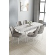 Jusie Beyaz Mermer Desen 80x132 Açılabilir Yemek Odası Takımı 6 Adet Sandalye Gri